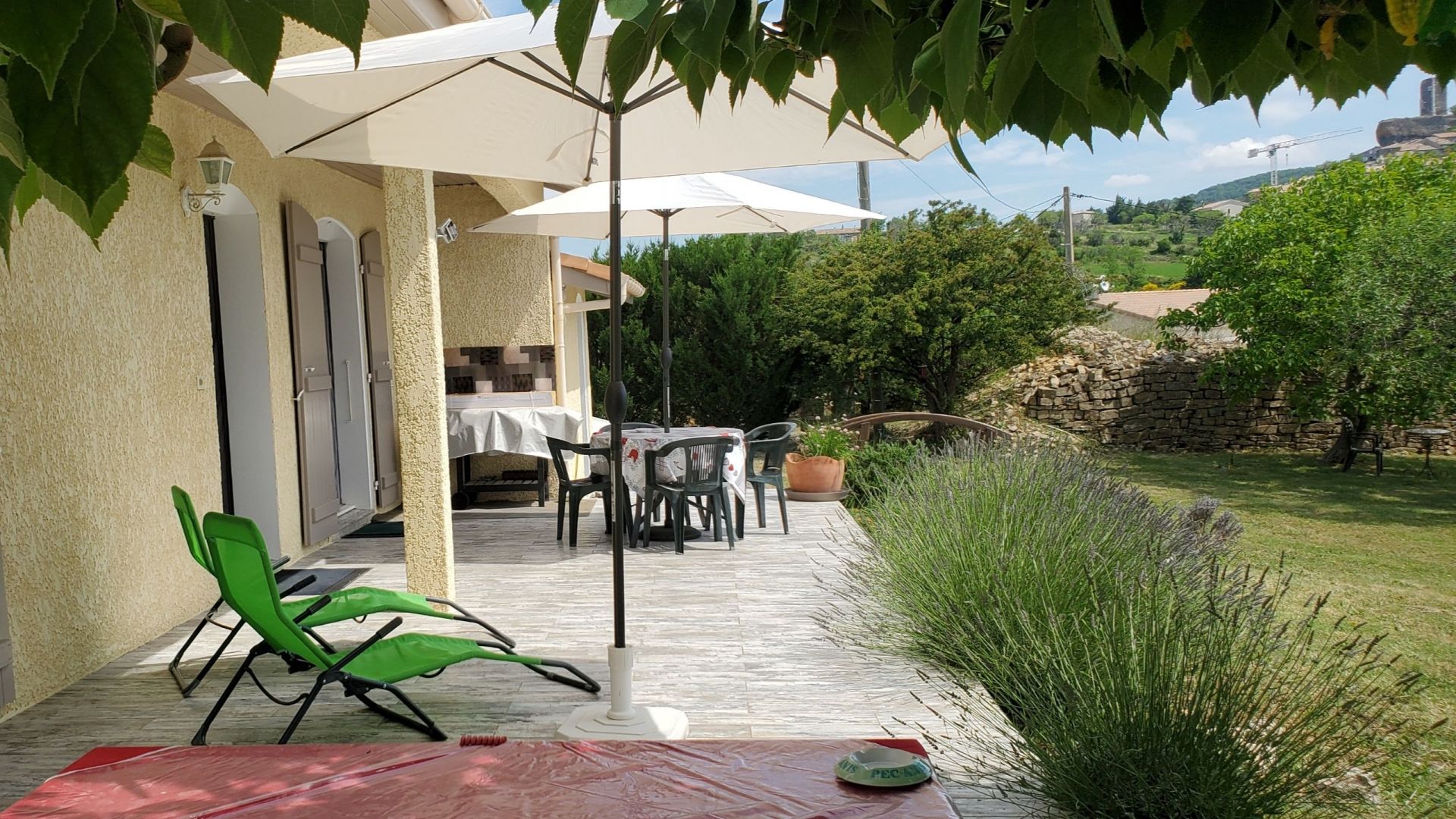 Vous bénéficierez d'une vue exceptionnelle sur le Mont Ventoux, la chaîne du Vercors et le village de Mirabel depuis la grande terrasse du gîte.